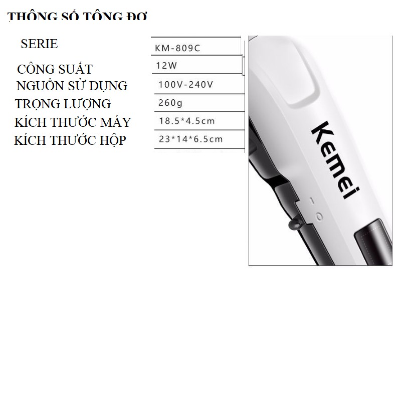 Thông số chi tiết tông đơ Kemei=> Nhãn hiệu : Kemei