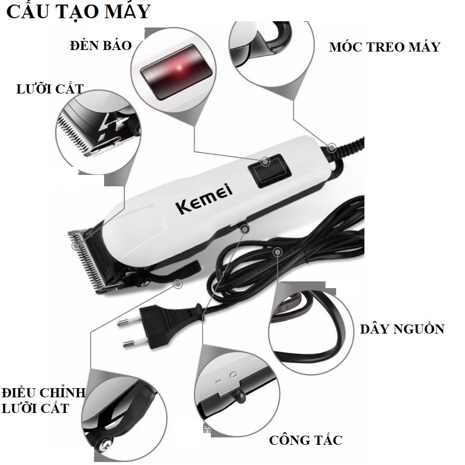 Tông đơ kemei KM-809C dây sử dụng trực tiếp nguồn 220v