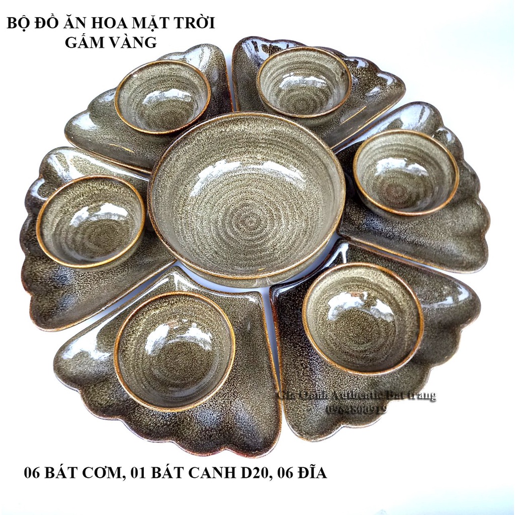 Giới thiệu "TỔNG HỢP" BỒ ĐỒ ĂN Hoa mặt trời men hỏa biến cao cấp ĐẸP - SANG TRỌNG- Xưởng gốm sứ Gia Oanh Authentic bat trang
