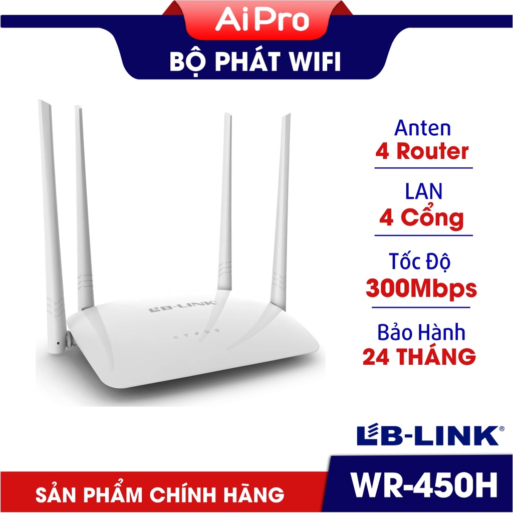- Bộ phát wifi LB-Link WR-450H: Tốc độ truyền tải không dây 300Mbps