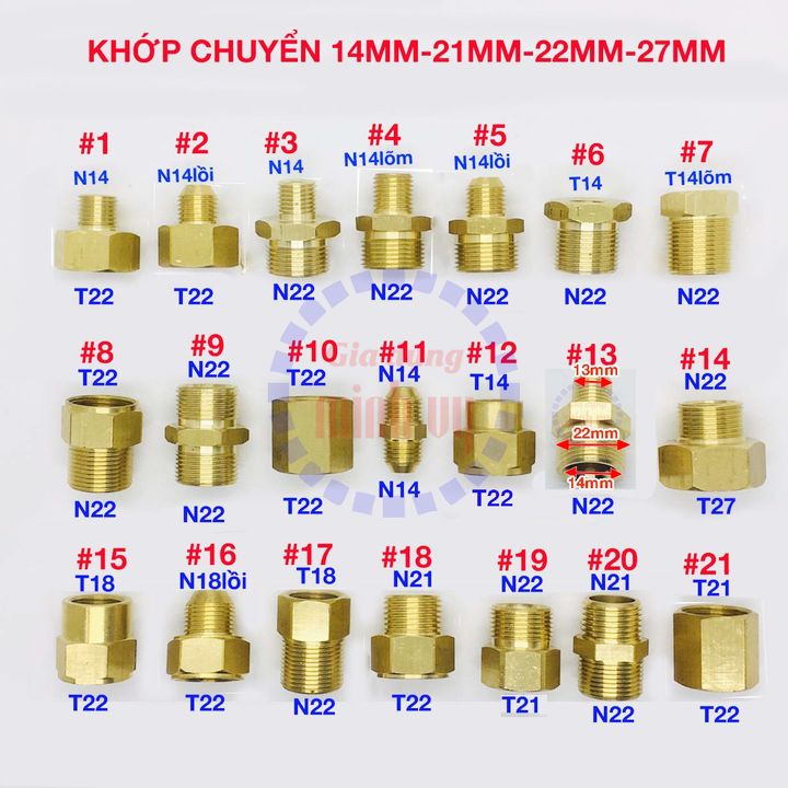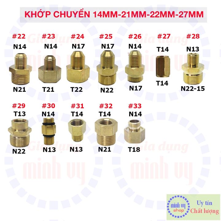 Nhà cửa & Đời sống > Dụng cụ & Thiết bị tiện ích > Máy bơm nước & phụ kiện || Tổng hợp các khớp chuyển ren 14mm 13mm 21mm 22mm 27mm - dùng cho các dòng máy rửa xe phổ biếnCòn hàng