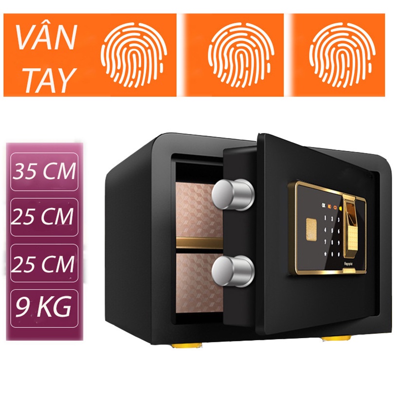 Két sắt mini khóa điện tử có thể đổi được mật khẩu bằng vân tay hay mã số theo ý muốn của mình:• Trọng lượng két sắt mini:9 kg