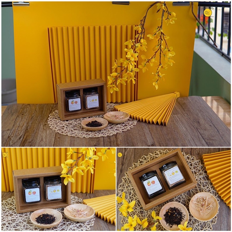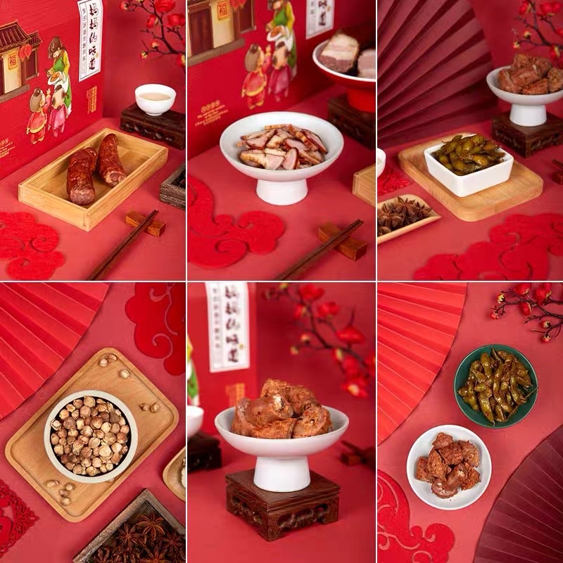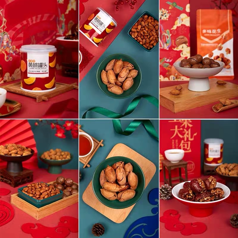 Set chụp ảnh với phông nền màu vàng là chủ yếu. Phù hợp với các loại sản phẩm như Bánh kẹo, mứt tết, đồ ăn vặt...