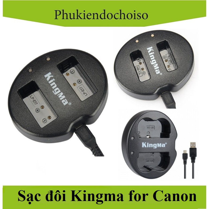 Dưới đây là Sạc đôi (sạc 2 pin), hoặc sạc 3 pin của Hãng Kingma cho các loại pin máy ảnh Canon, Nikon, Sony, Panasonic. Sạc này sạc cho tất cả các loại pin cùng mã pin của các hãng khác nhau và cả pin zinSạc đôi Kingma cho Canon