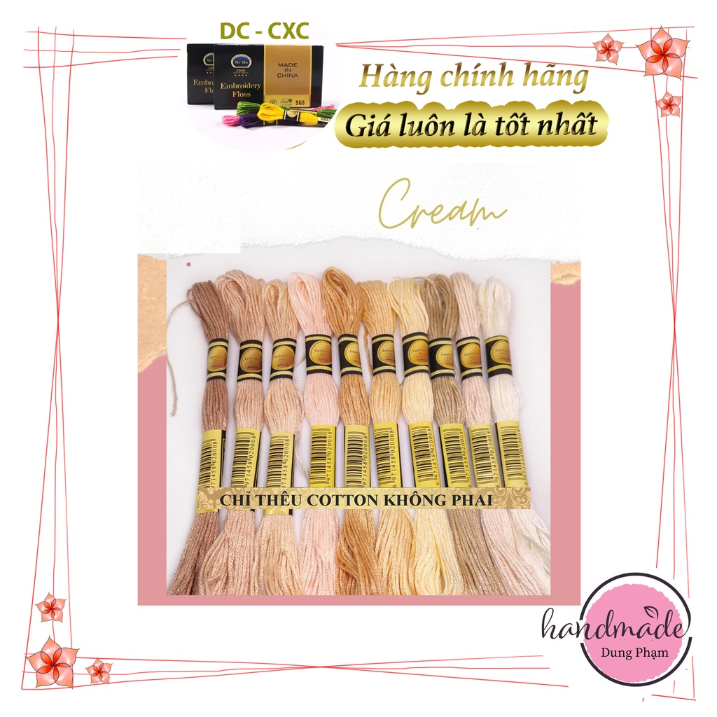 Tông kem /SET 10 TÉP CHỈ THÊU - MÀU NHƯ HÌNH - Chỉ thêu COTTON CXC / S 06