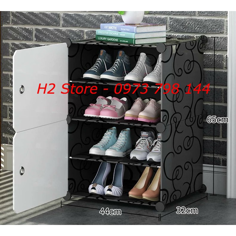 TỔNG KHO TỦ LẮP GHÉP ĐỂ GIÀY DÉP 4 Ô (chia ô) ĐEN CỬA TRẮNG ĐỤC