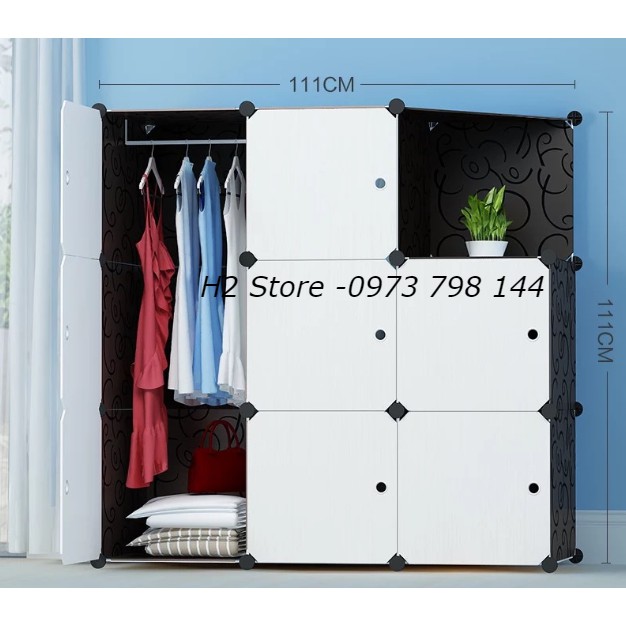 TỔNG KHO TỦ NHỰA ĐA NĂNG ĐỂ TREO ĐỒ THÔNG MINH 9 Ô (GỒM 1 KỆ GÓC) CỬA TRẮNG ĐỤC VÁCH ĐEN sâu 47cm