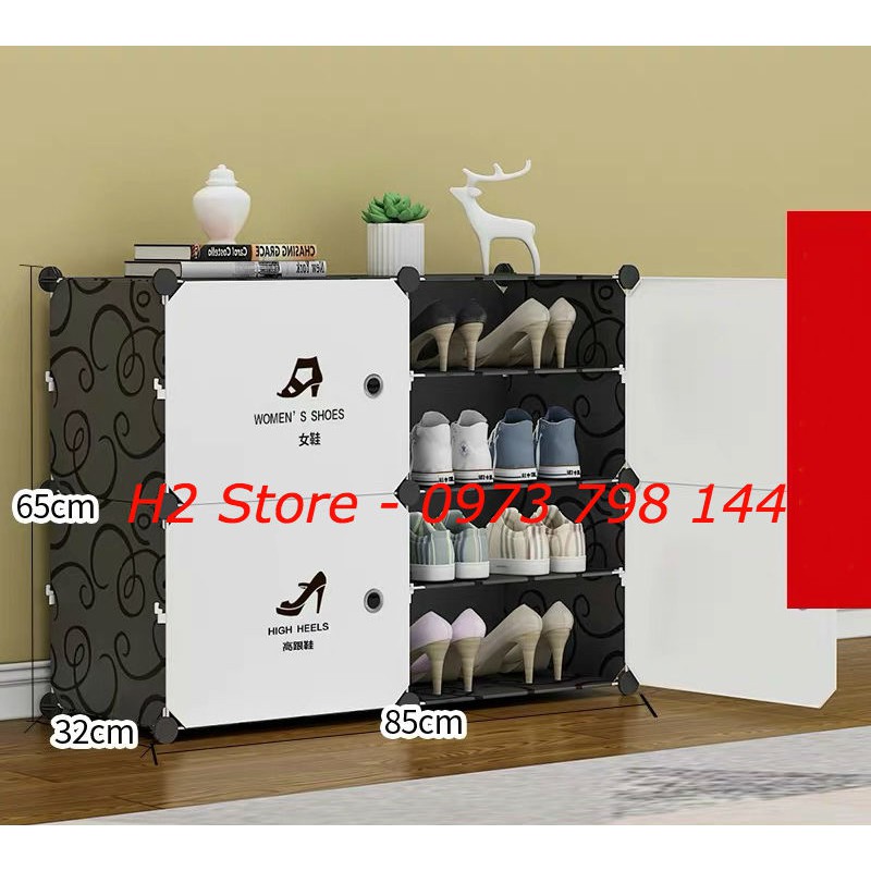 TỔNG KHO TỦ NHỰA LẮP GHÉP ĐỂ GIÀY 8 Ô (chia ô) VÁCH ĐEN CỬA TRẮNG GIÀY DÉP