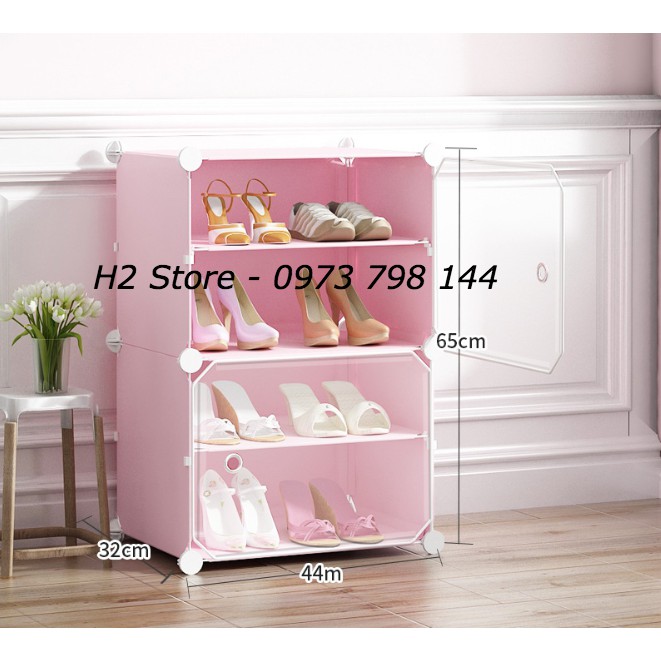 Giới thiệu TỔNG KHO TỦ NHỰA LẮP GHÉP ĐỂ GIÀY 4 Ô (chia ô) HỒNG NHẠT CỬA TRẮNG TRONG