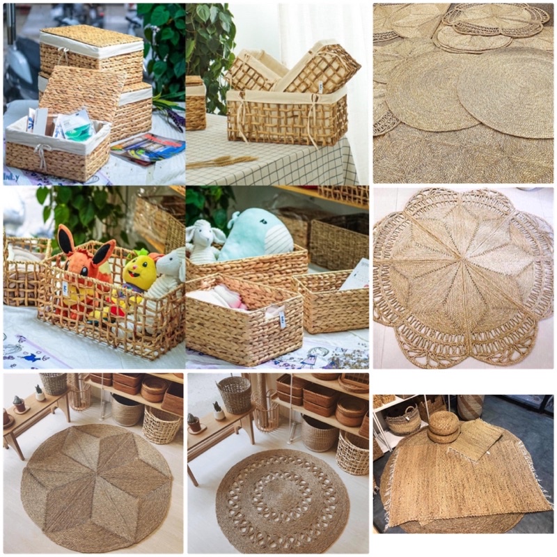 Thảm cói tròn và giỏ chữ nhật đựng đồ Vintage siêu bền, đẹp thân thiện với môi trường