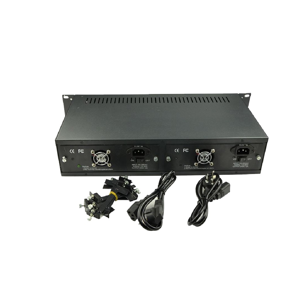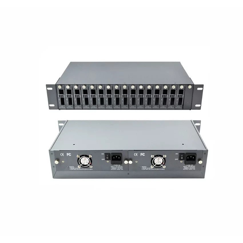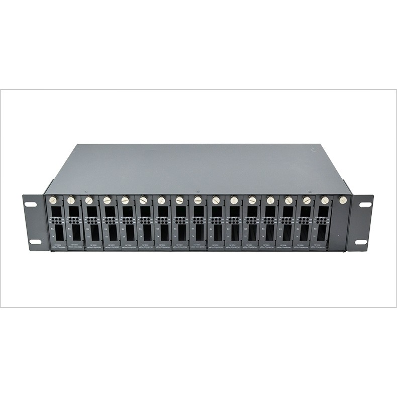 Bộ khung nguồn tập trung được thiết kế 14 khe cắm tương ứng với 14 converter quang, có thể tương thích với tất cả các loại converter quang lan hiện nay trên thị trường hiện nay.