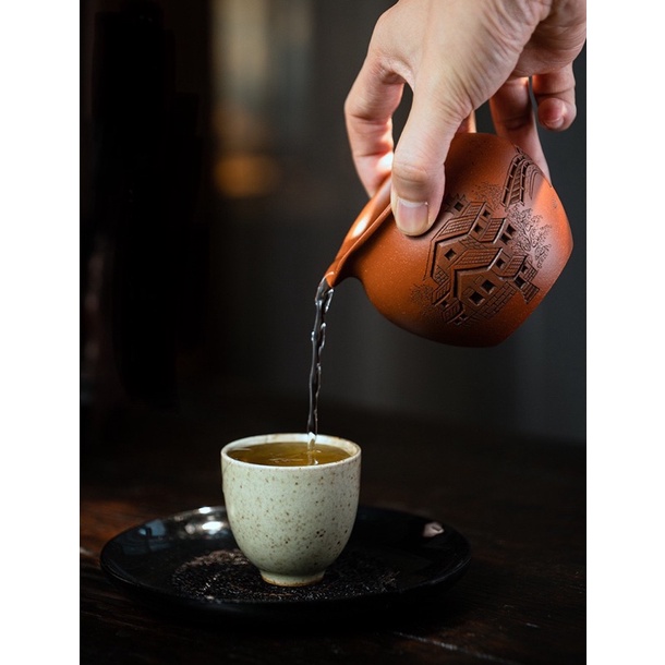 Tống Trà Tử Sa Khắc Cổ TrấnChất liệu:Đất Chu và Đại Hồng Bào