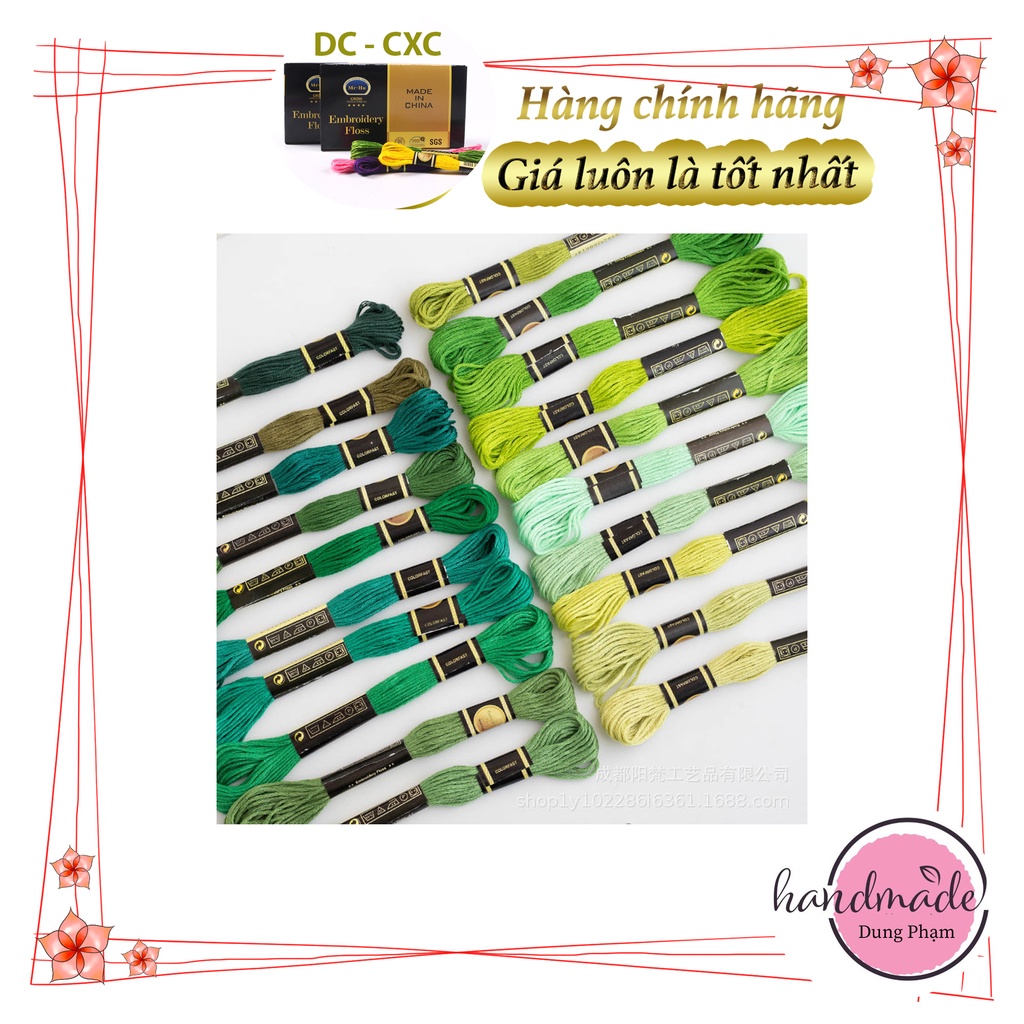 Sở thích & Sưu tầm > Dụng Cụ May Vá || TÔNG XANH LÁ - MÀU NHƯ HÌNH / SET 20 TÉP CHỈ THÊU COTTON CXC KHÔNG PHAI MÀUCòn hàng