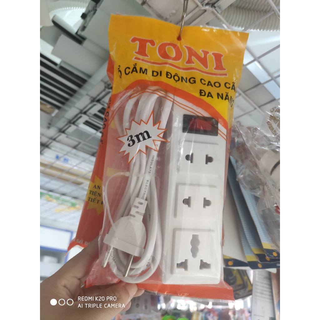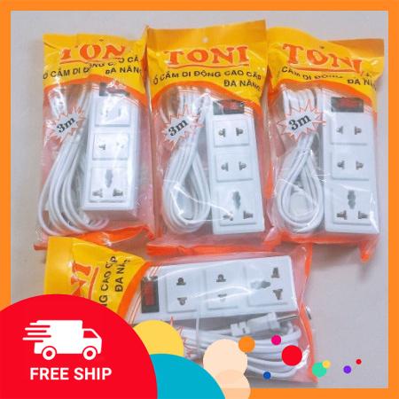 Thiết Bị Điện Gia Dụng > Mạch điện & Phụ tùng > Ổ cắm điện & Dây nối || Ổ dài Toni 3 Ổ cắm với dây dài 3m và 5m 1 công tắc, 3 lỗ cắm, nhỏ gọn, dễ di chuyển (có ổ 3 chấu tiện dụng)Còn hàng