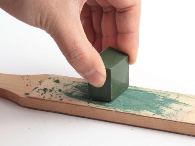 Sáp mài dao thích hợp để mài tất cả các loại dụng cụ. Nó thường được mài bằng một lớp sáp trên lớp da trên cùng để kéo dài độ bén của dao.
