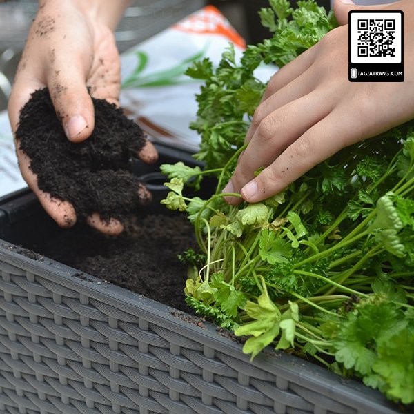 – Bước 2: Xử lý chậu và đất trồng rau mùi