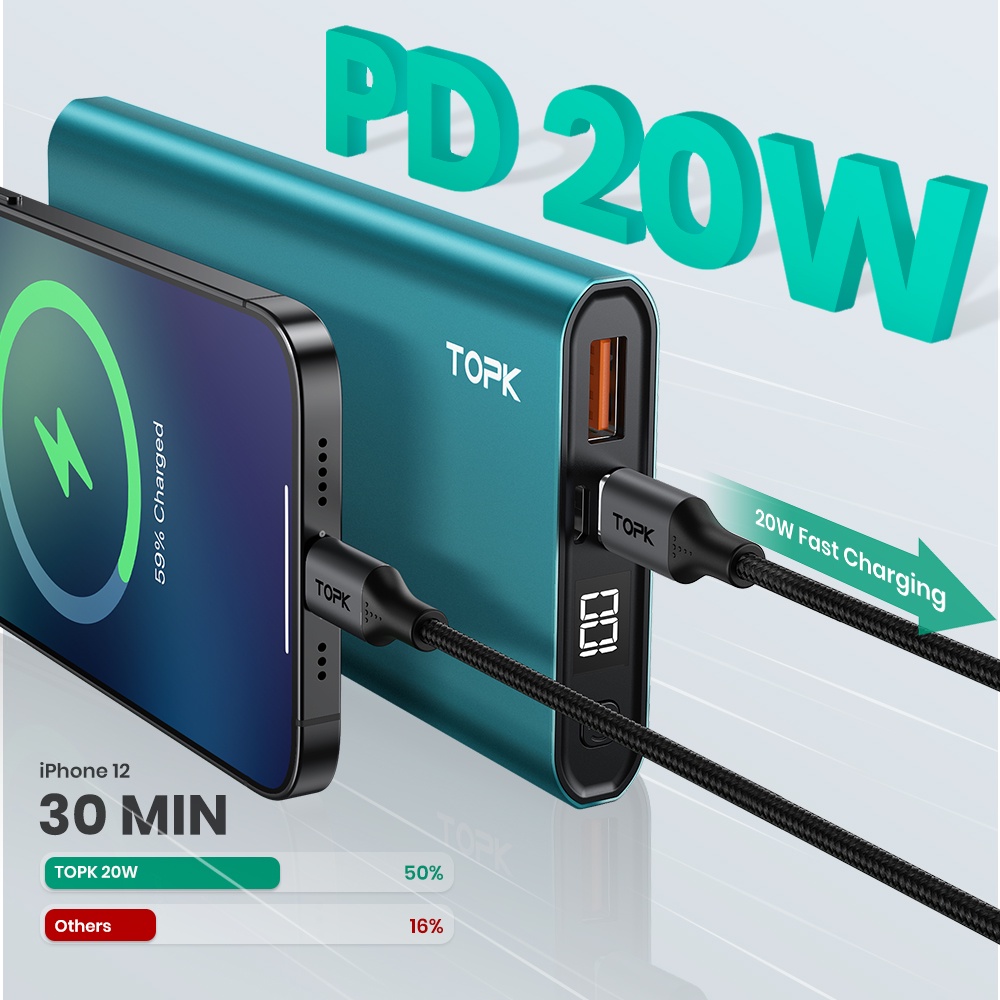 Giới thiệu TOPK Pin sạc dự phòng 10000mAh PD 20W Sạc Nhanh Hiển Thị Điện Tử for iPhone Xiaomi Samsung HUAWEI OPOO I1007/I1007P