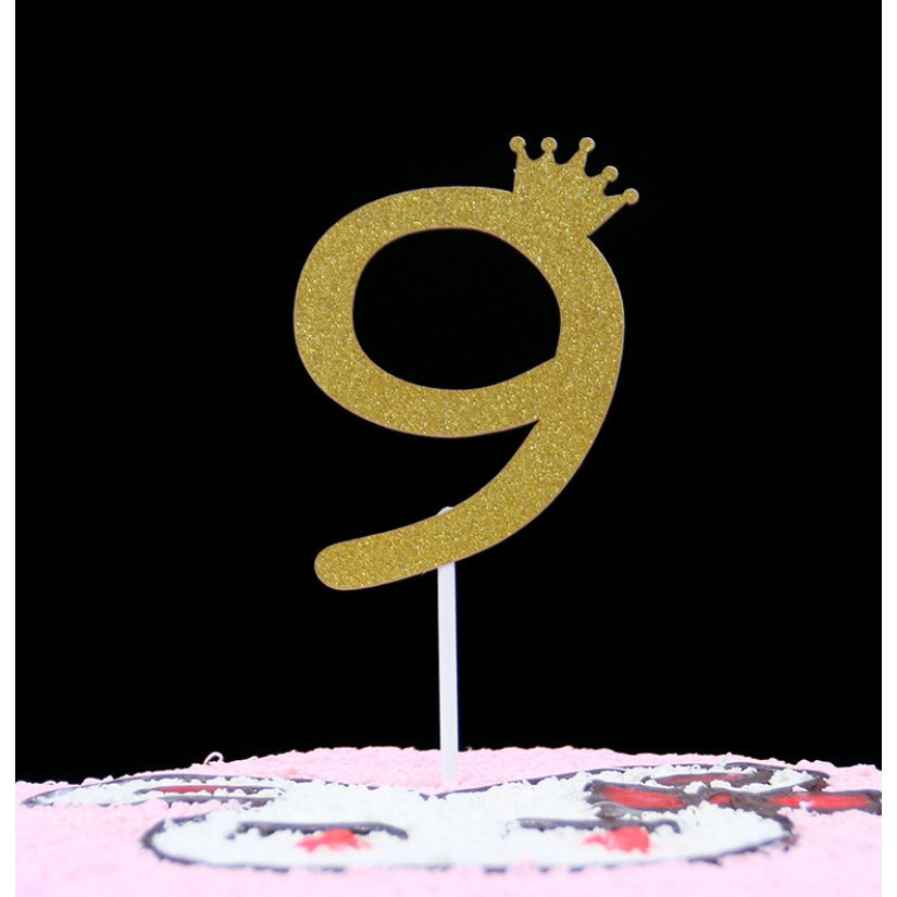 Túi 1 que số nhũ gắn vương miện trang trí bánh sinh nhật, cắm số nhũ- Dùng để trang trí bánh sinh nhật