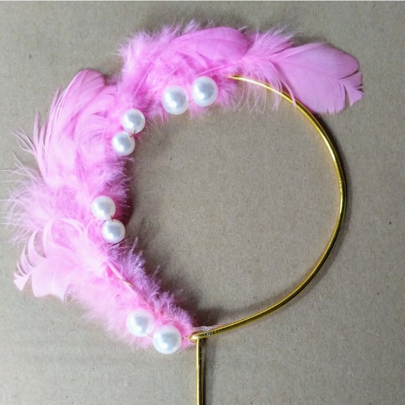 Topper Cắm Bánh kem Vòng Tròn Lông Vũ Đính Ngọc trang trí bánh kem, phụ kiện bánh sinh nhật