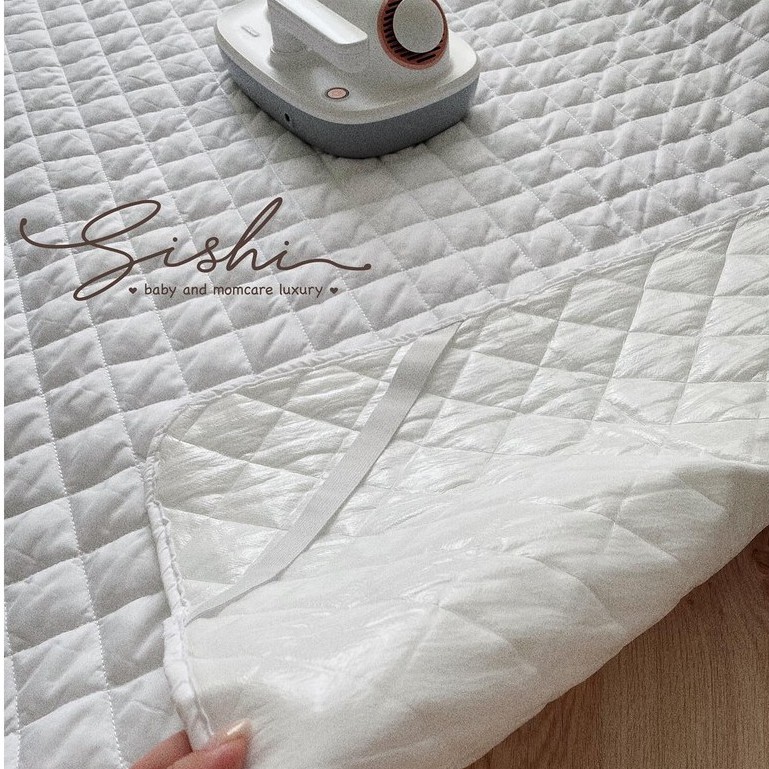 👉 Mẹ để ý loại tốt có chần lớp bông mỏng thấm hút , chứ mấy lót chống thấm kiểu áo mưa mỏng tang con tè cái lênh láng ra xung quanh chán lắm