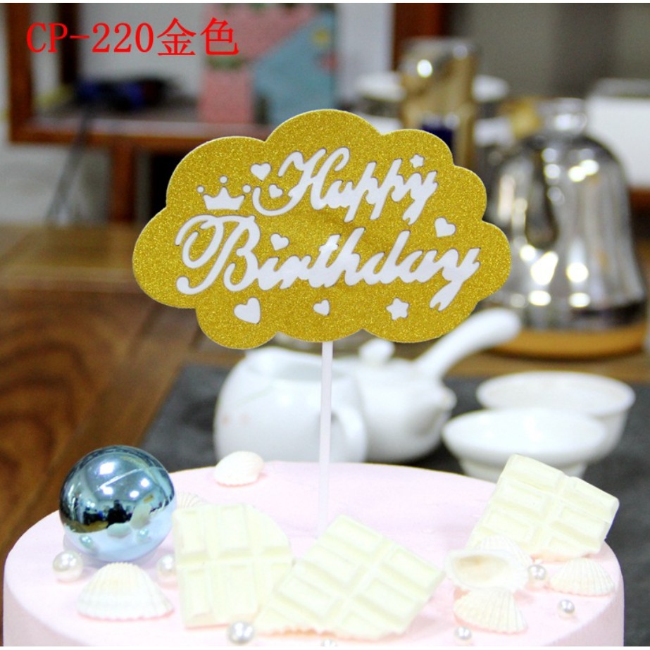 Nhà cửa & Đời sống > Dụng cụ nhà bếp > Dụng cụ nướng & trang trí bánh || Topper hình mây Happy birthday trang trí bánh -16Cm, thẻ cắm hình mây 2 lớpCòn hàng