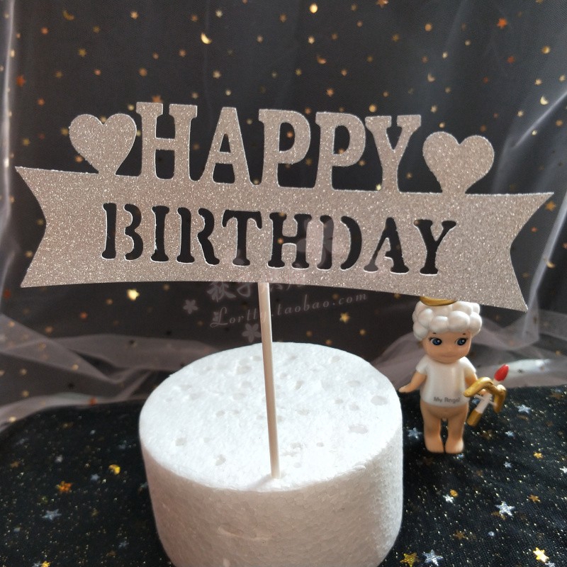 Topper HPBD chữ in bạc