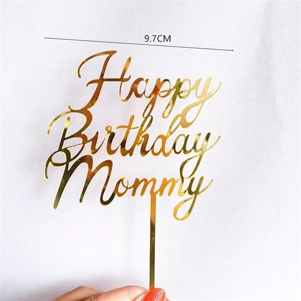 Topper mica HPBD Mommy vàng mới_Phụ kiện trang trí bánh sinh nhật