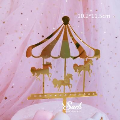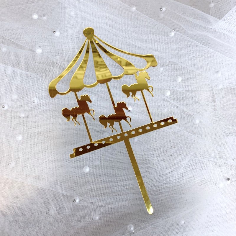 Nhà cửa & Đời sống > Dụng cụ nhà bếp > Dụng cụ nướng & trang trí bánh || Topper mica HPBD vòng quay ngựa vàngCòn hàng