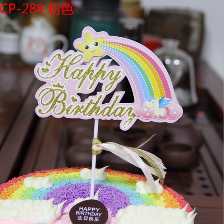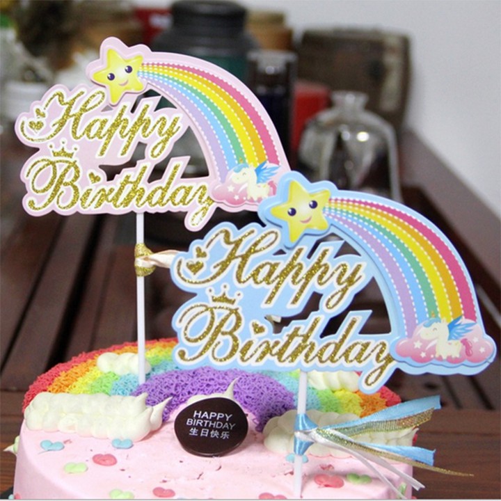 Giới thiệu Topper nhũ cầu vồng cắm bánh sinh nhật cao 21Cm, trang trí bánh sinh nhật, hình cắm cầu vồng