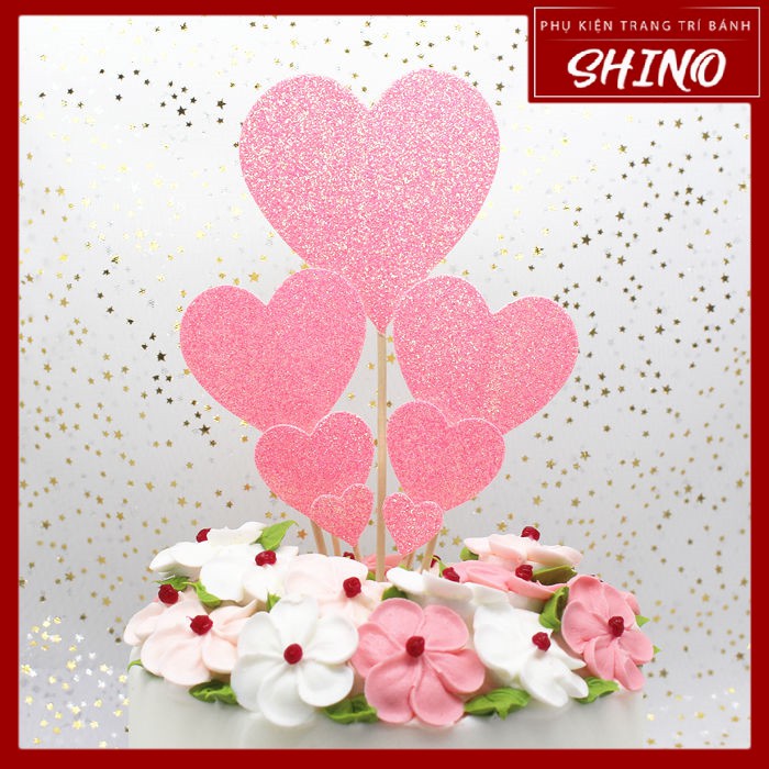 Giới thiệu Topper/que cắm giấy kim tuyến hình tim/sao mix size trang trí bánh