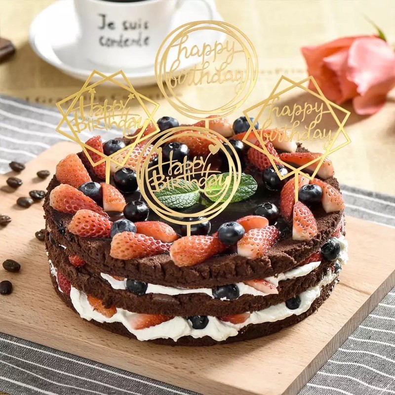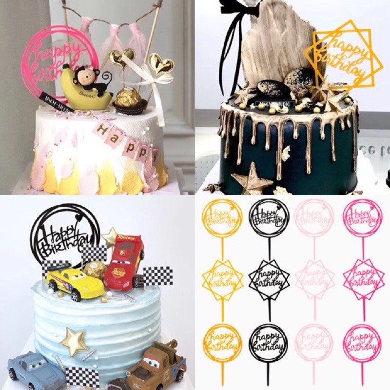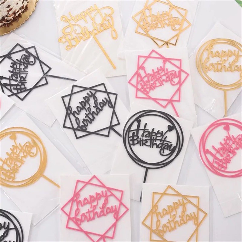Topper que cắm nhựa Happy Birthday trang trí bánh sinh nhật