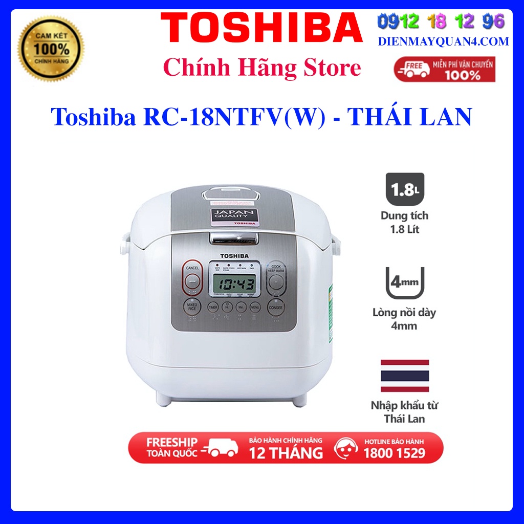 Thiết Bị Điện Gia Dụng > Đồ gia dụng nhà bếp > Nồi cơm điện || [Toshiba RC-18NTFVN(W)] Nồi cơm điện Toshiba 1.8 lít RC-18NTFV(W) - Toshiba RC-18NTF(W) -Chính hãng Thái LanCòn hàng