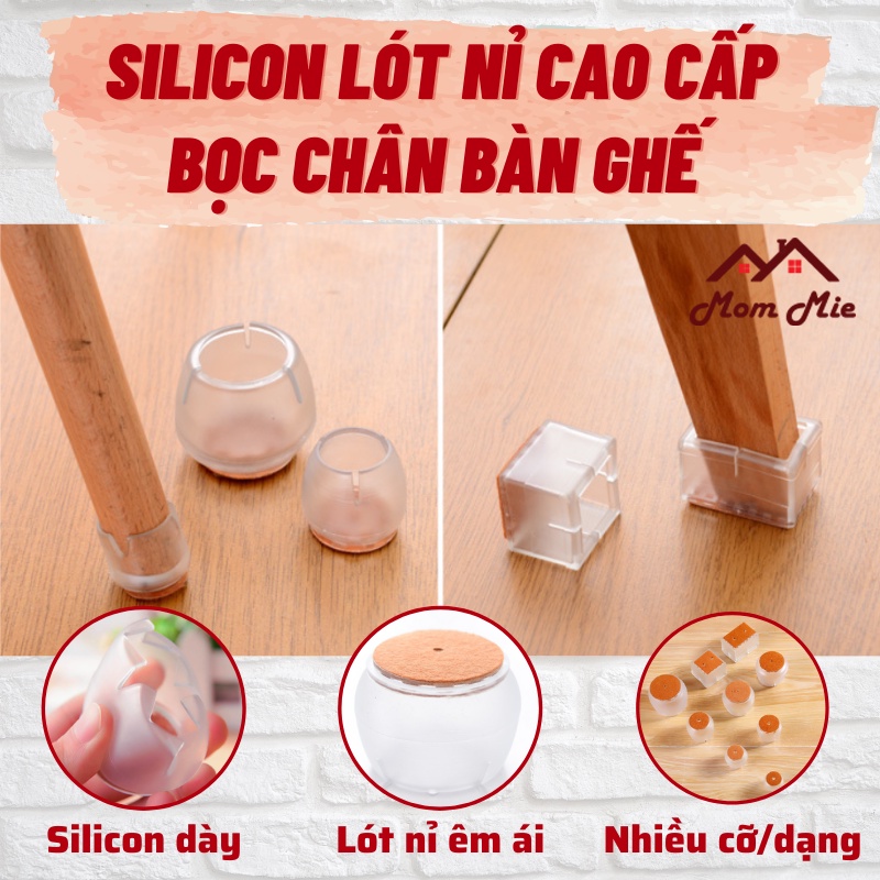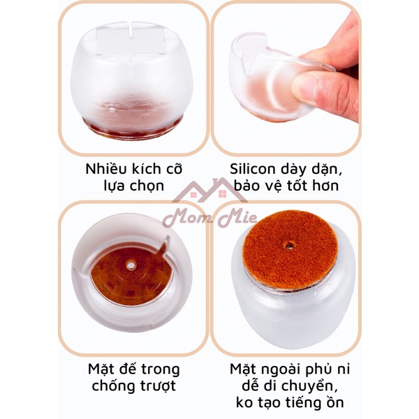BỘ 4 NÚT SILICON LÓT NỈ BỌC CHÂN BÀN GHẾ CHỐNG ỒN, CHỐNG TRẦYThông tin về sản phẩm dưới đây thuộc sở hữu của shop Mom Mie Online, mô tả đúng theo chất lượng sản phẩm của shop. Vui lòng không sao chép.