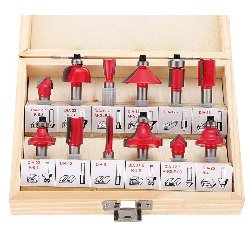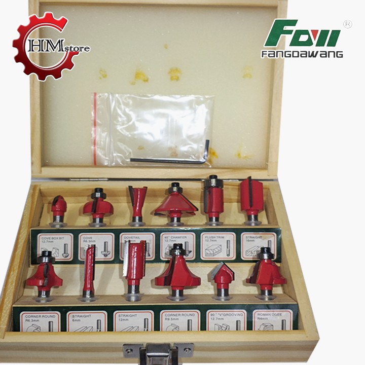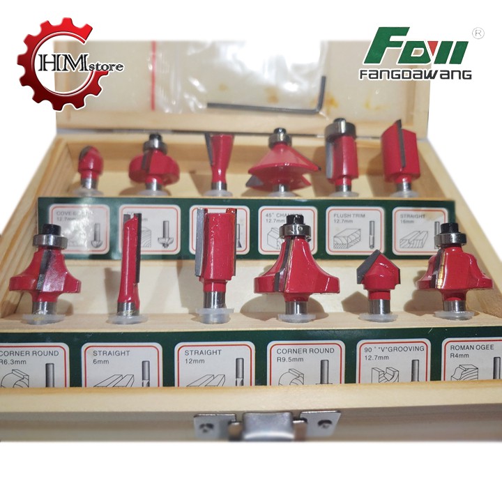 Bao gồm 12 mũi phay gỗ được đặt trong hộp gỗ gọn gàng.