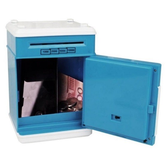 - Đồ chơi két sắt mini có thể tự động rút tiền vào khi ta đút tiền vào khe nhận tiền.