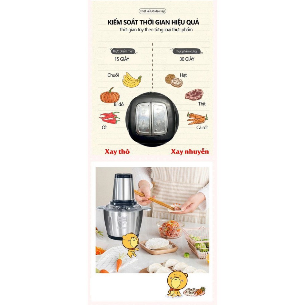 Hàng loại 1 chất lượng tốt máy xay thịt, máy xay cầm tay đa năng 2 lít công suất lớn cối inox cao cấp, bền bỉ và chất lượngSẢN PHẨM