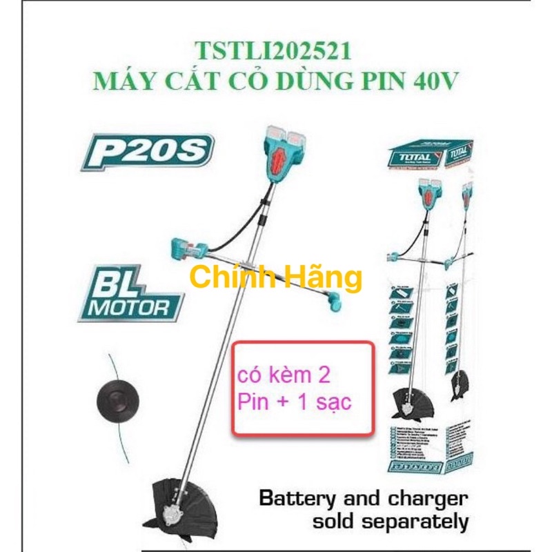 Nhà cửa & Đời sống > Làm vườn > Máy cắt cỏ, dụng cụ cắt cỏ || TOTAL Máy cắt cỏ dùng pin 40V TSTLI202521 (Cam kết Chính Hãng 100%)Còn hàng