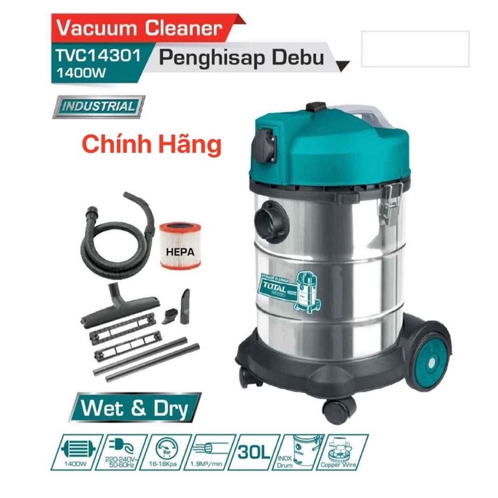 Giới thiệu TOTAL Máy Hút Bụi 30L 1400W TVC14301 (Cam kết Chính Hãng 100%)