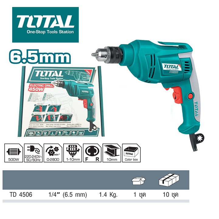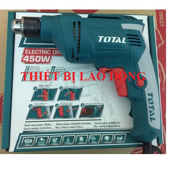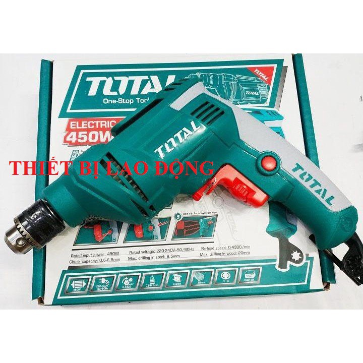 Nhà cửa & Đời sống > Dụng cụ & Thiết bị tiện ích > Dụng cụ > Cưa, máy cắt & máy mài || Total - TD4506E Máy khoan điện cầm tay 450W - 6.5mmCòn hàng