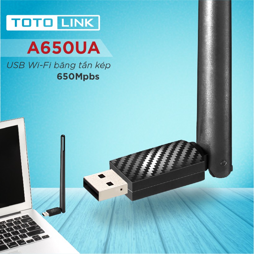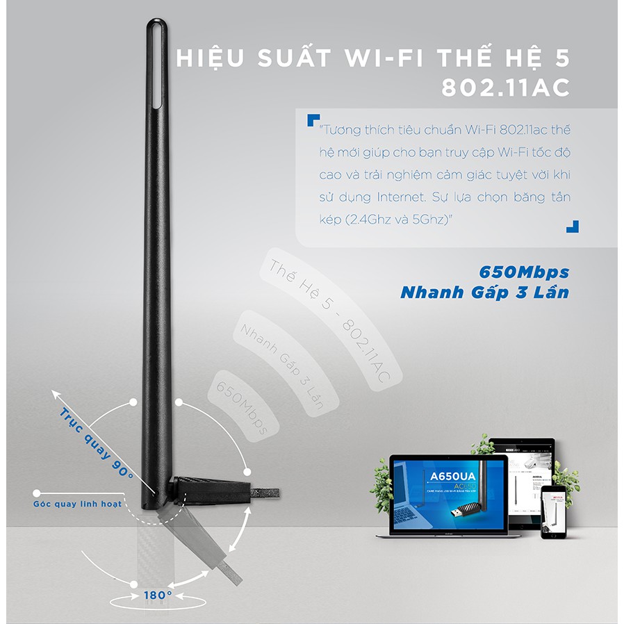 TOTOLINK A650UA USB WiFi băng tần kép chuẩn AC 650Mbps cho máy tính bàn PC laptop Hãng phân chính thức phối chín