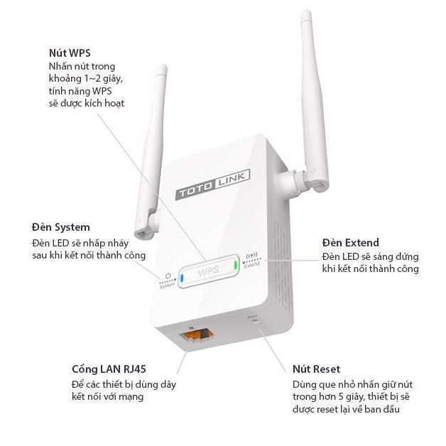 Totolink EX200 - Bộ Mở Rộng Sóng Wifi,cục hút wifi kích sóng wifi tốc độ cao HÀNG CHÍNH HÃNG- EX200 là thiết bị mở rộng sóng Wi-Fi chuẩn N, giúp bạn mở rộng vùng phủ sóng Wi-Fi hiện có đến các khu vực khó tiếp cận . Bạn có thể mở rộng vùng phủ sóng một cách đơn giản bằng cách nhấn nút WPS trên EX200 và thiết bị nguồn phát. Thiết kế cắm tường, trang bị 2 anten công suất cao, tốc độ lên đến 300Mbp, EX200 đáp ứng nhu cầu phủ sóng Wi-Fi đến mọi nơi bạn cần - Phủ sóng đến mọi nơi