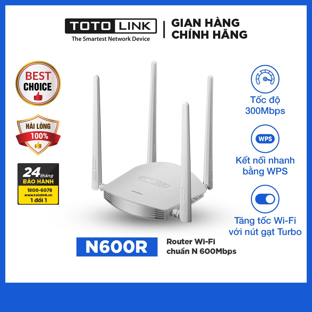 Giới thiệu sản phẩm Router Wi-Fi Chuẩn N 600Mbps – N600R – TOTOLINKN600R là thiết bị router wifi tương thích chuẩn kết nối IEEE 802.11N cung cấp tốc độ 600Mbps, chạy trên băng tần 2.4GHz. Với 04 ăng ten hiệu suất cao, N600R cung cấp tín hiệu wifi ổn định hơn và vùng phủ sóng rộng hơn để giảm những khu vực khó tiếp cận. Nhìn chung, N600R là lựa chọn tốt nhất cho văn phòng nhỏ sử dụng wifi trên băng tần 2.4GHz