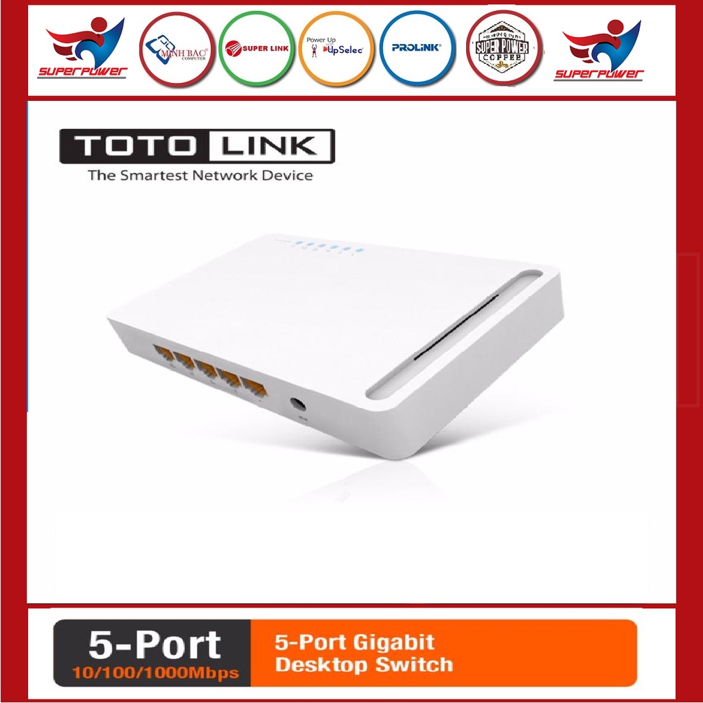 Giới thiệu sản phẩm TOTOLINK S505G Switch 5 cổng Gigabit Bộ chia mạng cho máy tínhS505G là Switch 5 cổng Gigabit phù hợp cho căn hộ và các văn phòng. Được trang bị 5 cổng Gigabit hỗ trợ tự nhận cáp thẳng/chéo có băng thông lên đến 2000Mbps ở chế độ full duplex. Bạn không cần phải lo về loại cáp, chỉ cần cắm cáp vào và sử dụng. S505G có đèn LED báo hiệu kết nối và hoạt động để bạn có thể dễ nhận biết.