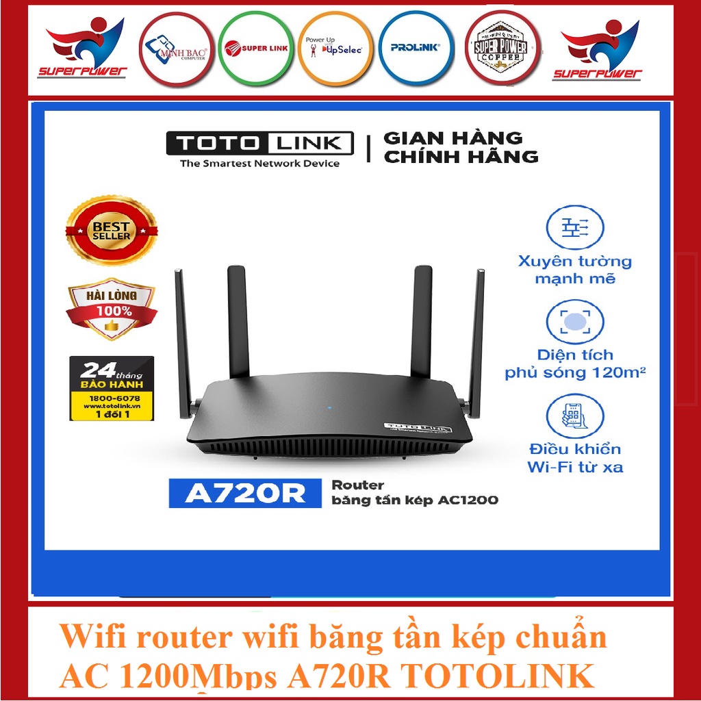 Giới thiệu [Mã 254ELSALE giảm 7% đơn 300K] TOTOLINK Wifi router wifi băng tần kép chuẩn AC 1200Mbps A720R