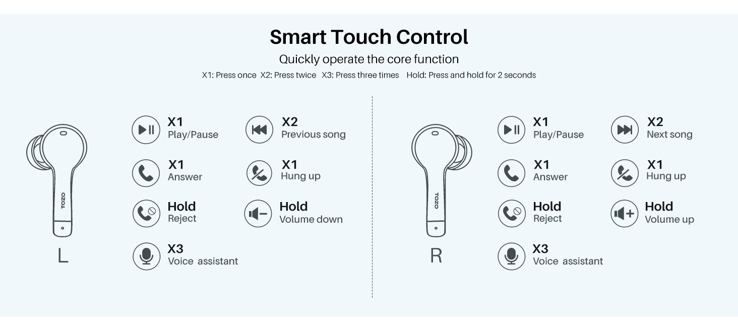-TOZO APP: có bộ điều chỉnh âm thanh EQ độc quyền, bạn có thể điều chỉnh tai nghe theo các loại nhạc khác nhau, khả năng giảm tiếng ồn vật lý tuyệt vời giúp bạn đắm chìm trong âm nhạc