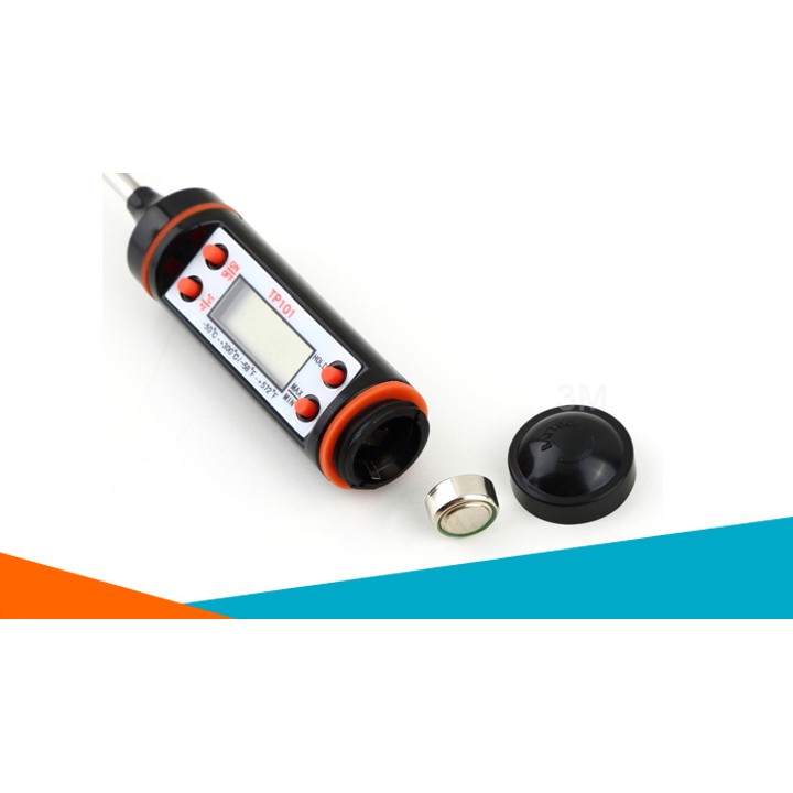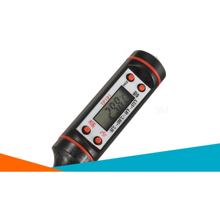 1. Thông tin về sản phẩm Nhiệt kế điện tử TP101 -50*C - 300*C- Nhiệt kế điện tử TP101 là thiết bị cảm biến nhiệt, TP101 được thiết kế riêng dành cho việc đo nhiệt độ thực phẩm, đo nhiệt độ của nước (nhiệt độ của chất lỏng) với độ chính xác cao. Nhiệt độ được ghi nhận và hiển thị trên thân nhiệt kế.