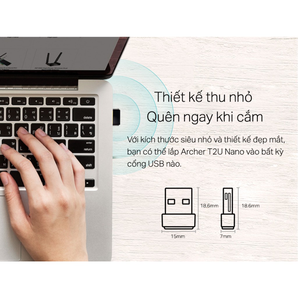 Archer T2U Nano - USB KẾT NỐI WI-FI BĂNG TẦN KÉP ĐỘ LỢI CAO AC600