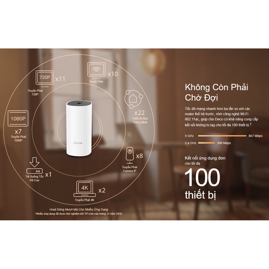 Tốc độ mạng nhanh hơn ba lần so với các router thế hệ trước, nhờ công nghệ Wi-Fi 802.11ac, giúp cho Deco có khả năng cung cấp kết nối không bị lag cho tối đa 100 thiết bị.†.
