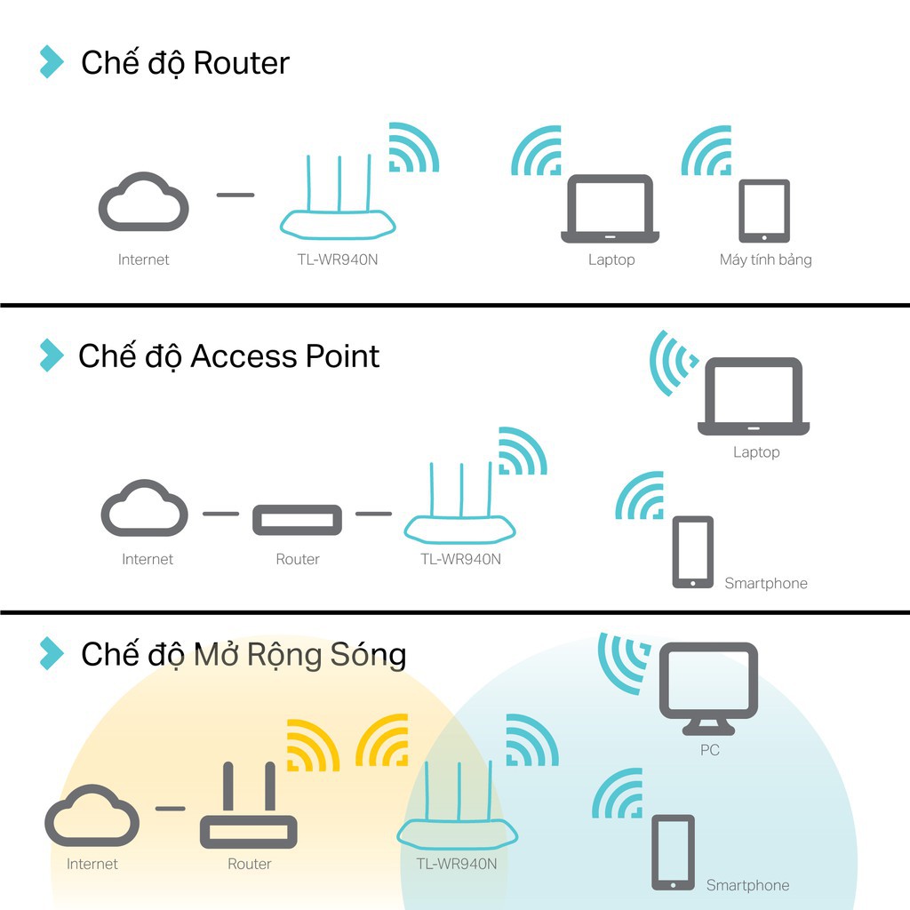 HỖ TRỢ 3 CHẾ ĐỘ: Router, Mở rộng sóng (RE) và Điểm Truy Cập (AP)