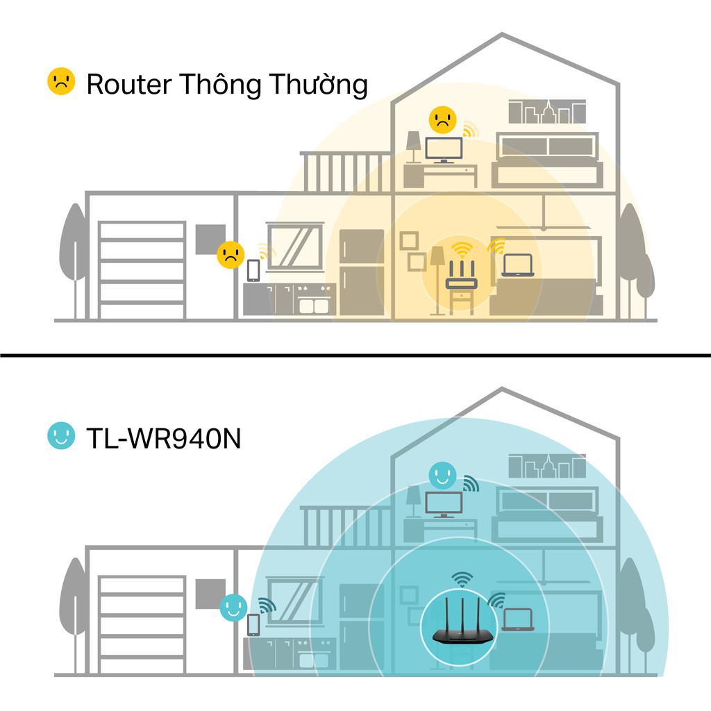 TL-WR940N của TP-Link là giải pháp tốc độ cao tương thích với chuẩn IEEE 802.11b/g/n. Với công nghệ 802.11n, TL-WR940N mang lại cho người dùng hiệu suất Wi-Fi lên tới 450Mbps đáp ứng nhu cầu mạng gia đình cho các tác vụ đòi hỏi độ nhạy cao như phát video HD trực tuyến, chơi game online và tải các tập tin lớn.